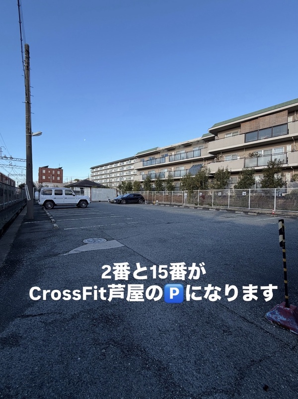 CrossFit芦屋では専用駐車場をご用意しております。(2026年2月~2台分、3月~5台分を予定)